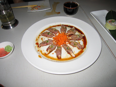 Next Bonita and I had New Style Sashimi, the tuna upgraded to bluefin. I won't describe the dish again, but suffice it to say that my sister loved it, and even Dad was able to enjoy it as well! There are three slices each of bluefin tuna, salmon and Chilean sea bass.